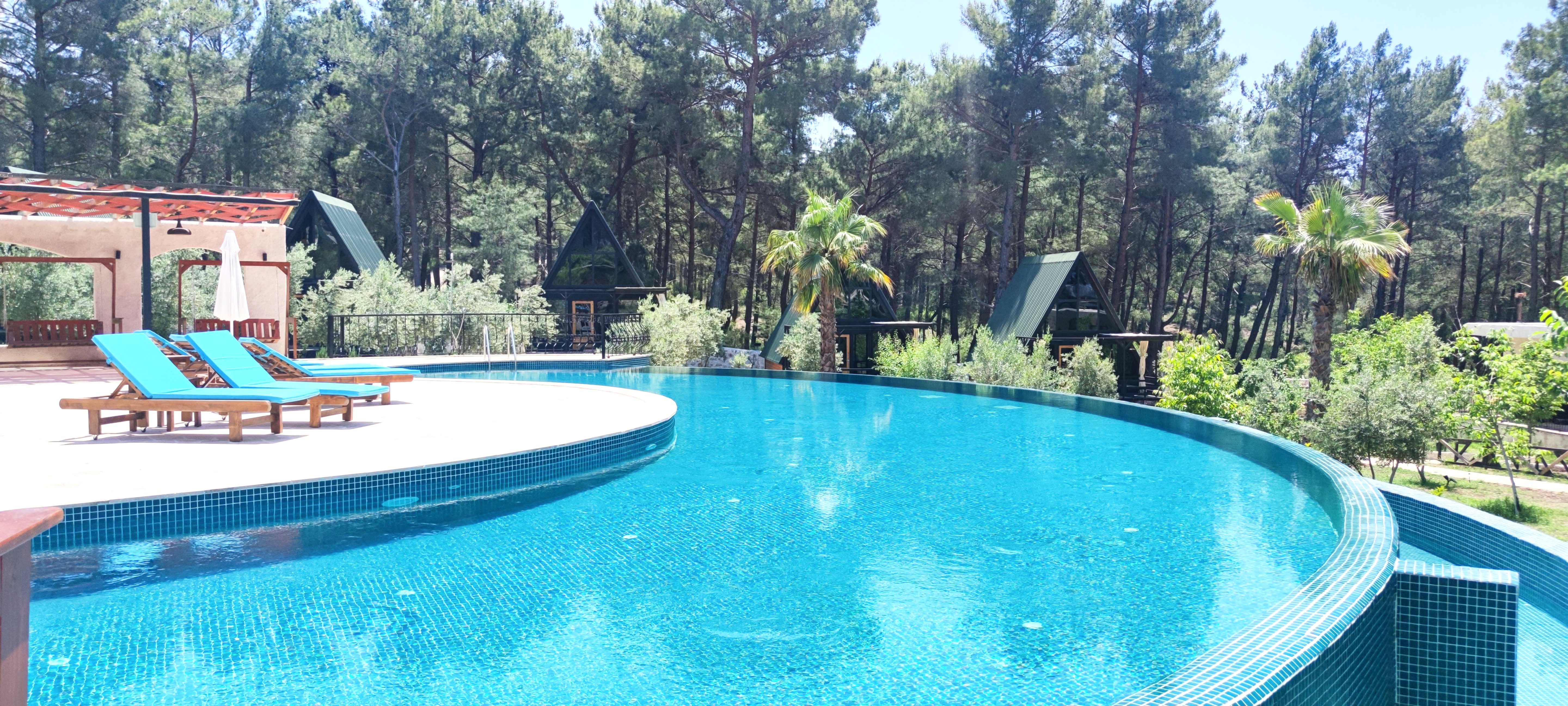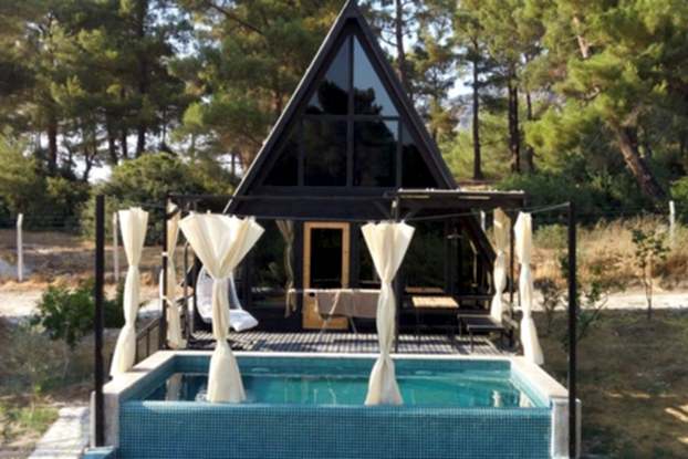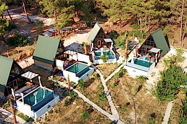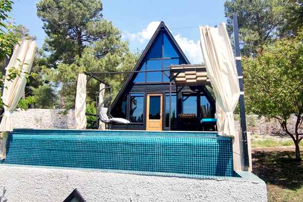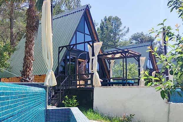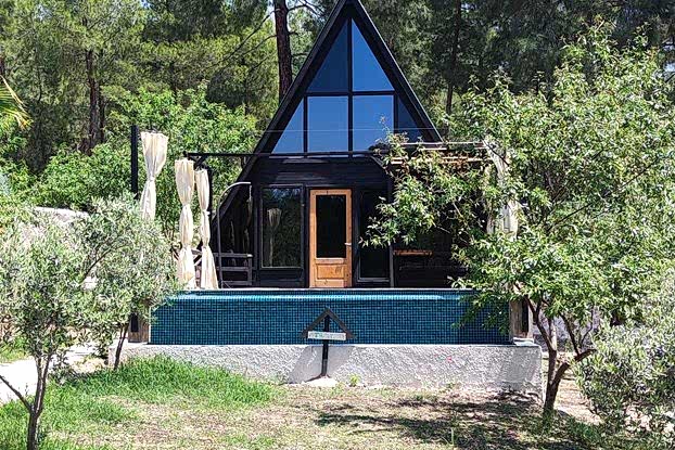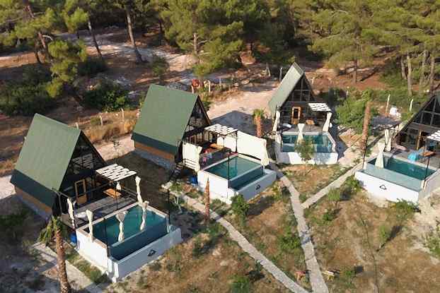 This resort was Built on 2021 in Antalya, Turkey. It was built with 70 square meters of Stella 70 model A-Frame cabins. Each cabin has its own pool. sixteen A-Frame cabins took 75 days to assemble.